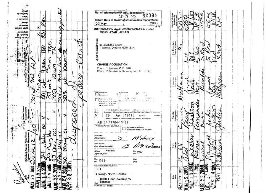 Ferial Attar Jafari, born July 12, 1981, lied to Toronto Police in April 2000 and laid false criminal charges againt her father, Mehdi Attar Jafari.