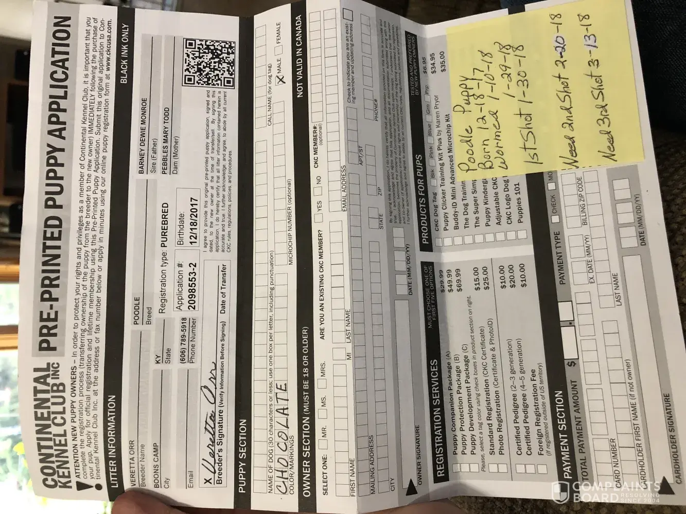 I purchased a "purebred toy poodle" from gds puppies in february. I was lead to believe the dogs were bred and raised on site. I noticed on the ckc registration papers that he was from boons camp, kentucky. I looked up boons camp and found out that it is one of the biggest puppy mill in kentucky ran by veretta orr, who's name is on the pups ckc...