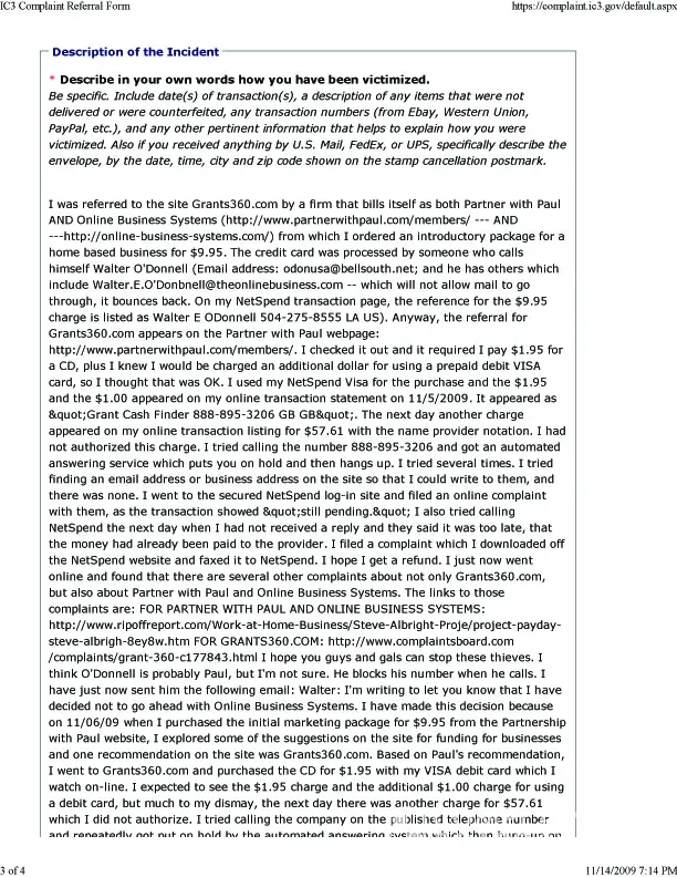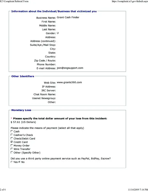 PLEASE READ ABOUT **Grants360.com** Internet Scam Charge money for no product