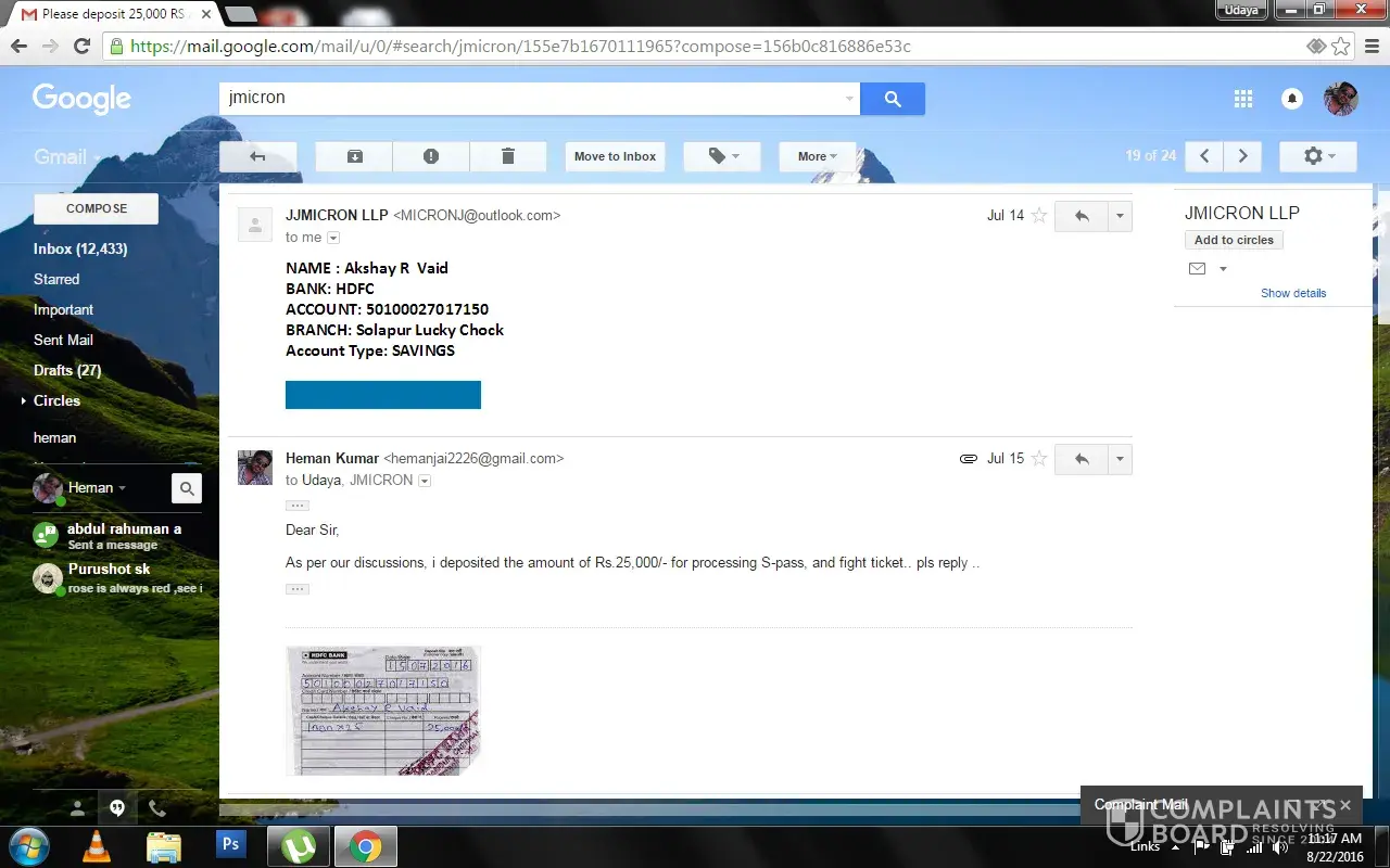 JMICRON LLP company is offering jobs and taking money for VISA process and cheating us
