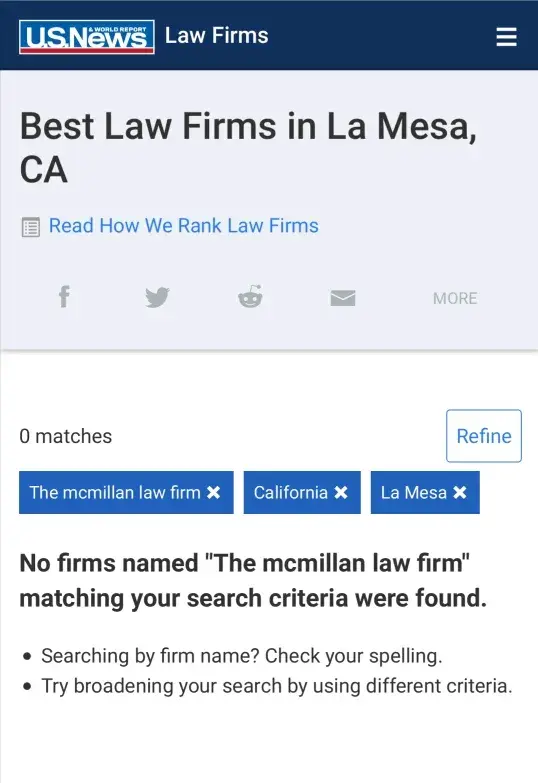 Scott McMillan a San Diego attorney, filed a lawsuit to have several websites remove content concerning his failed law practice where he lost over 100 appeals and writs, settled a case for $20 against the San Diego Sheriff, and was involved in child molestation as contained in a report contained in San Diego Superior Court Case No. 37-2017-0036344 . Scott McMillan, office in La Mesa, California, was eviscerated in federal court where his lawsuit was dismissed. A motion seeking sanctions was filed where he lied to the court clerk to have the case heard before a judge who was bias against bloggers.