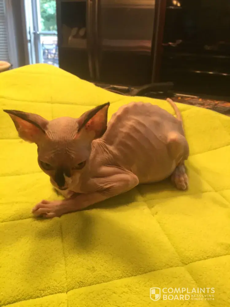 The bottom line here is, we have a signed contract do not form the owner in which it does not state that will re-imburse money, nor replace a kitten unless they die of a congenital defect or the condition HCM; which this was proven to be neither. Even if this kitten were to have passed away form FIP another condition not specifically guaranteed in our contract, we would have gone above and beyond and offered a replacement kitten if proper care and medical treatment had been given to this kitten. The condition of poor Mira before she was ever brought in for medical treatment is appalling and despite our 10 years breeding we have never once seen a kitten this emaciated and in poor condition. The fact that this owner wants a refund or replacement is ludicrous, we had full evidence and full right to in fact charge him with animal neglect, but choose not to as to alleviate stress.