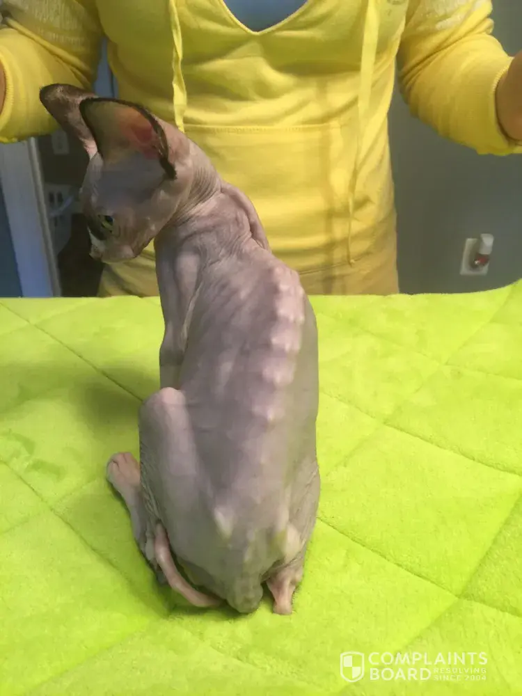 A few weeks later, I received a facebook message from another member who also had the same issue happen with her cat that she received from April. It turns out that one of her cats was my kitten's sister. She ended up ok, but the other cat that she received from them started getting the same symptoms that Mira did and the cat ended up dying the exact same way. April then saying that the cat was neglected. This is a horrible scam this breeder is running, the customer service is poor and they are stealing peoples money by refusing to honor their contracts and selling sick cats. Do not believe anything that was written in April's posts.