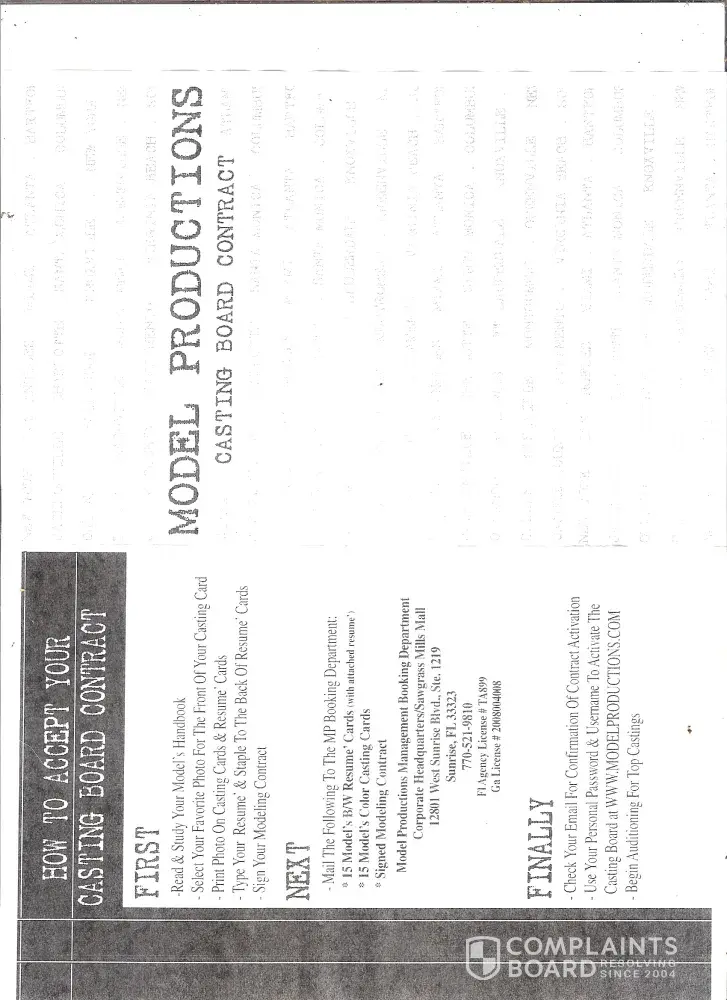 Over the years I have read nurmerous of complaints about this company. Well, I was recently fired from them and I honestly think it is time for the truth to come out. Model productions is a scam. They will tell you, your beautiful in all actually they just think of you has a walking dollar sign. If you do not meet to their standards of beautiful, they will...