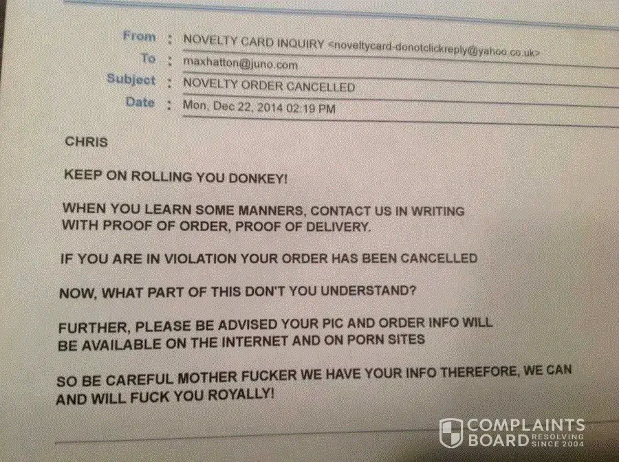 This is completely false statement, I have ordered from them numersous times and received my order and cards. I have ordered with them over 6 times for my friends and no problem.