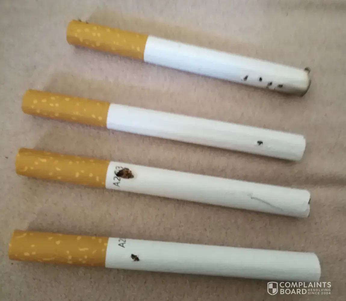 I have been purchasing Parker and Simpson blue for the last couple months but am constantly unable to use individual cigarettes due to finding holes in them. I have attached 2 photos the first came from the same packet of 20s and the 2nd from a packet of 40s I purchased yesterday. At the cost per cigarettes at the present time I'm getting a bit annoyed as you can understand.