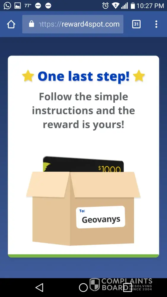 Read full complaint and 1 commentthey offer me a $1000 amazon gift card