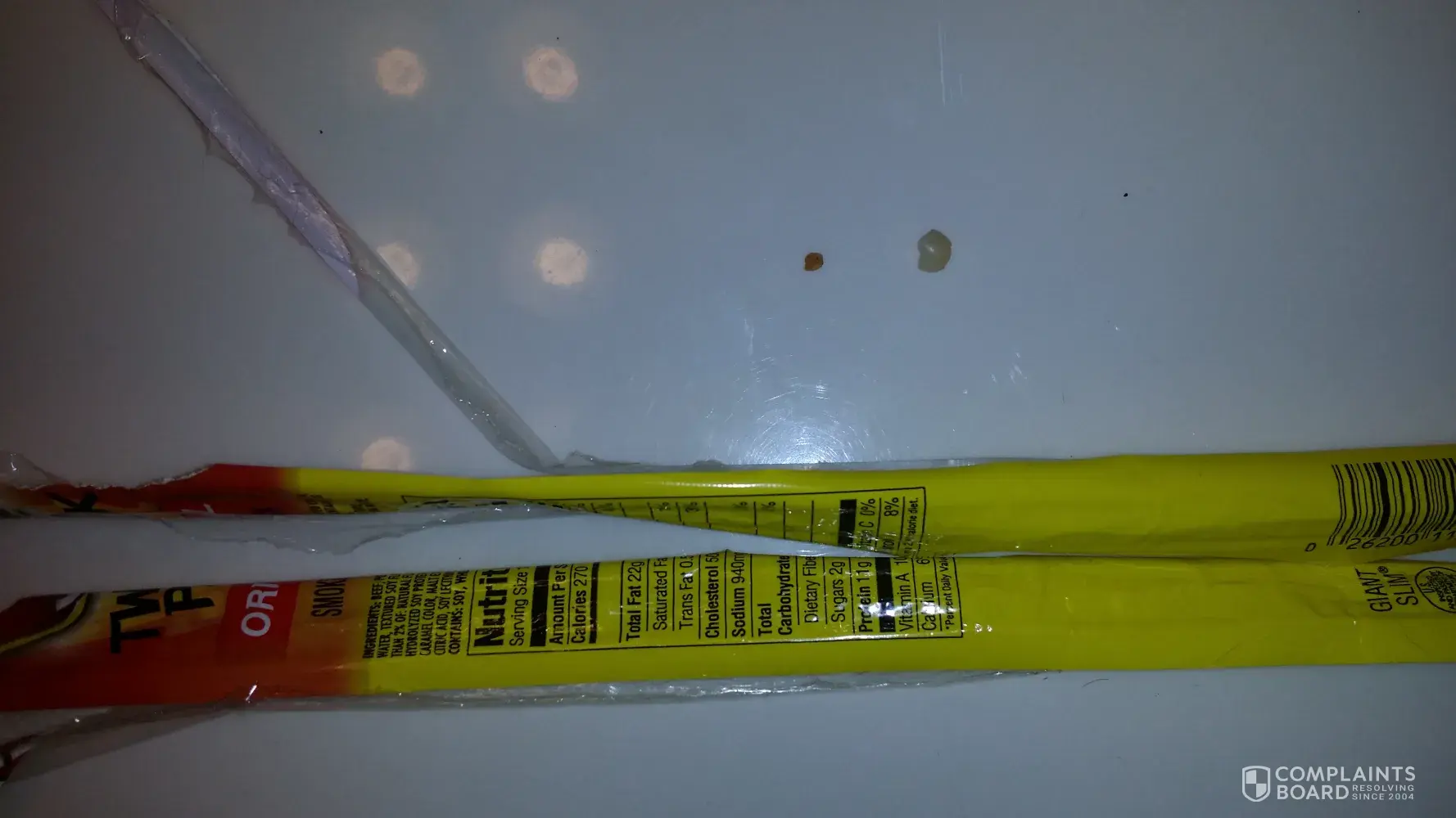 Bought a slim jim at gas station and was eating and bit into it and something hard and plastic was in it. It was also sharp.