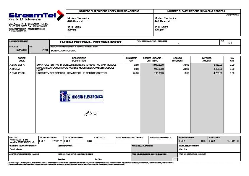 We placed order with stramtel regarding IPTV system named Smartcaster and receiving devices called set-top boxes, the order was for 3 smartcasters and 26 set-top boxes with amount of 15600 Euro, we received 1 smartcaster after 8 months and another piece after another 4 month, s and nothing else untill now, no one answer telephone calls or mails now and at the begingin the sales contact who made the deal with us disapeared and they say that she lefft the work, her name is Manal Shoukry, any one deal with this company have to take care for his money, because once you transfer money to their acount you will receive nothing from them.