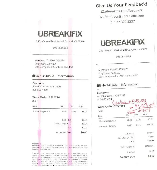 UBreakIFix's parent company, Asurion, was called by me so that they could pay for the damages.