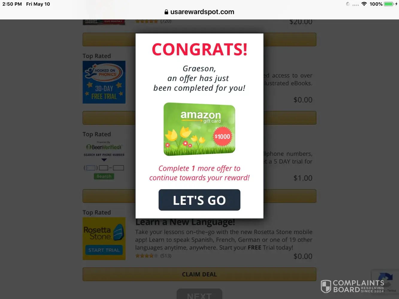 usarewardspot.com reviews and complaints