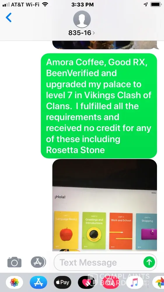 They keep texting me from a strange number 835-16 asking me to share it with 5 friends, trying to scam my friends and myself. I'm including pictures of the texts and offers I completed all for nothing. They need to be held accountable and fulfill their legal obligations. I ended up spending money for nothing. The companies that are being used need to do something to put an end to this scam.