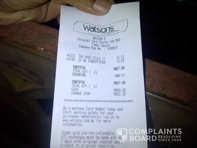i can get her name..chinese old lady (aunty)..i feel this is ridiculous forcing a customer to buy a product..can watson refund me? can watson change the orange color container that i bought to loreal which i prefer? can watson do the exchange for me?