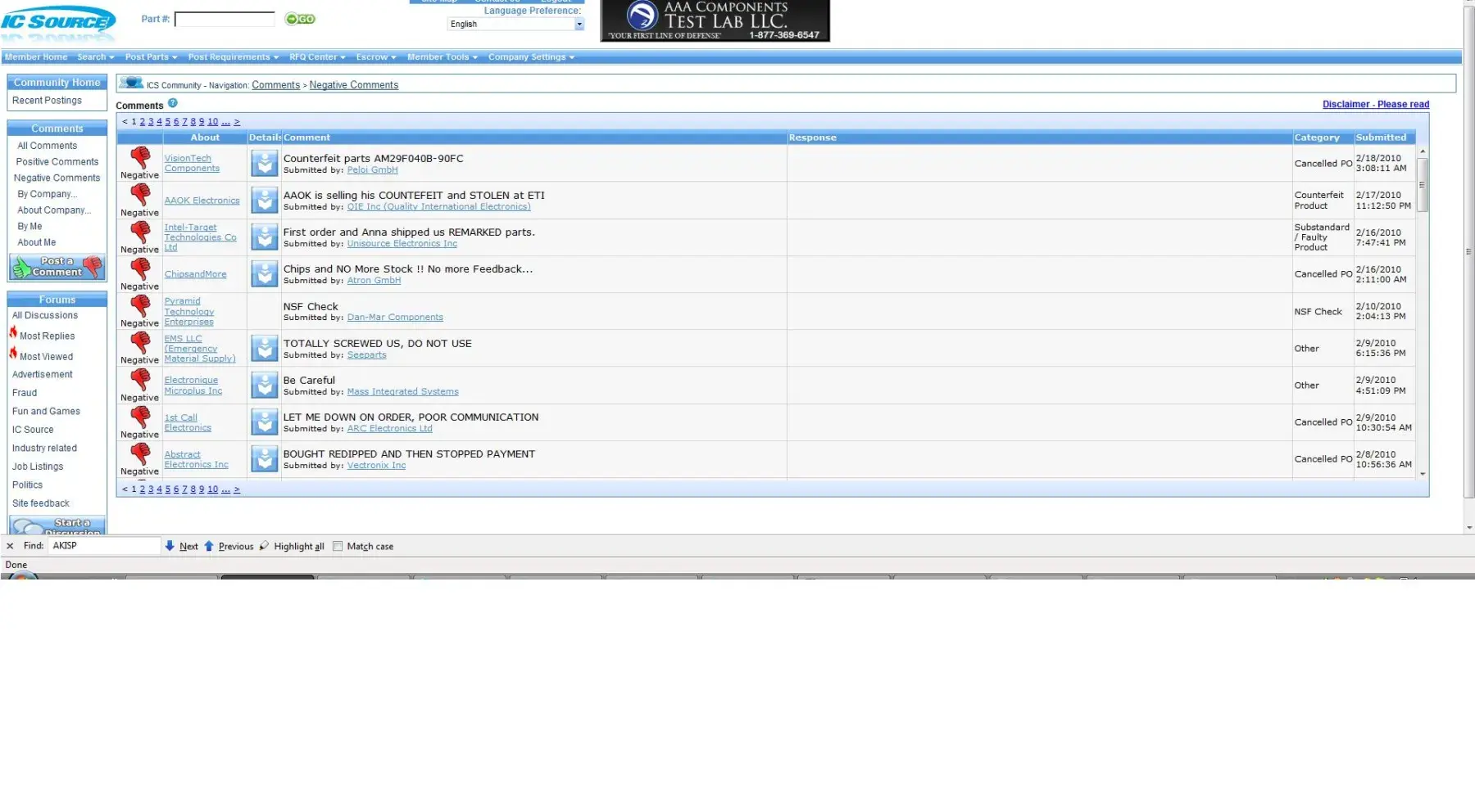 ERAI is frequently asked why these posts have been and continue to be made. Simply put, due to the nature of our organization which involves monitoring, investigating, reporting, and mediating issues affecting the global supply chain of electronics, it is not uncommon to have companies that have been reported by ERAI attempt to discredit our organization. The hundreds of posts that are currently visible on the Internet have been made by one individual using dozens of Internet screen names. Because the Internet provides bloggers with a cloak of anonymity, a person can create the illusion of numerous disgruntled or concerned individuals when that is simply not the case. The author of these posts is an individual that was reported by ERAI for selling faulty material. He made numerous threats against ERAI and its employees both during the investigation and after he was reported.