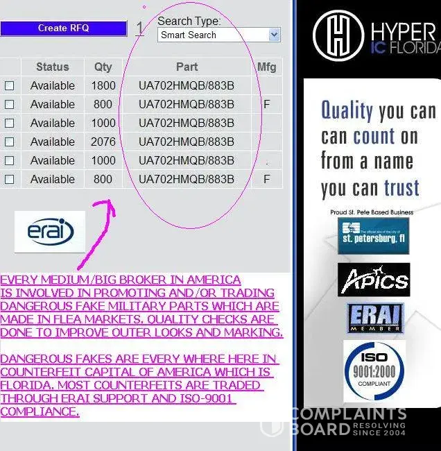Visiontech was caught by FBI for selling 16 million $ worth of fake military parts. Where are these parts gone, Majority of fake parts were sold to other American brokers, few who bought and sold fake parts along with Visiontech are affiliated to ERAI. R.H. Electronics. ( Dave Vincent) Rose Electronics ( Joe Galinski) USBID Inc ( Gary Heyes, Jerome...