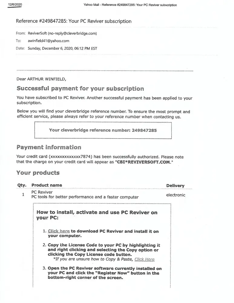 Reference #[protected] your pc reviver subscription