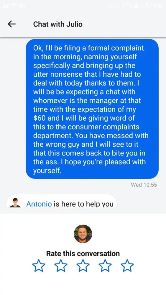 Melissa claims, that she sent a request to a 'shift leader' to permit monetary compensation of the $60 that I lost as a result of their negligence. And so I continued to wait, see print screens, for some two or three more hours. Melissa consistently insisted that they said they would get back to her soon and that she was waiting for a response. Eventually, having spent my entire 30th of December online talking to these people for over 10 hours on one day and at least a solid 6 the day prior, I had to go to sleep. At this point Melissa had finished her shift, the shift leader had finished his, or so I have been told, and no answer was ever given to me on the matter. The next day, some other person had come online and suggested that their was no refund available as the charges were not made from their side.