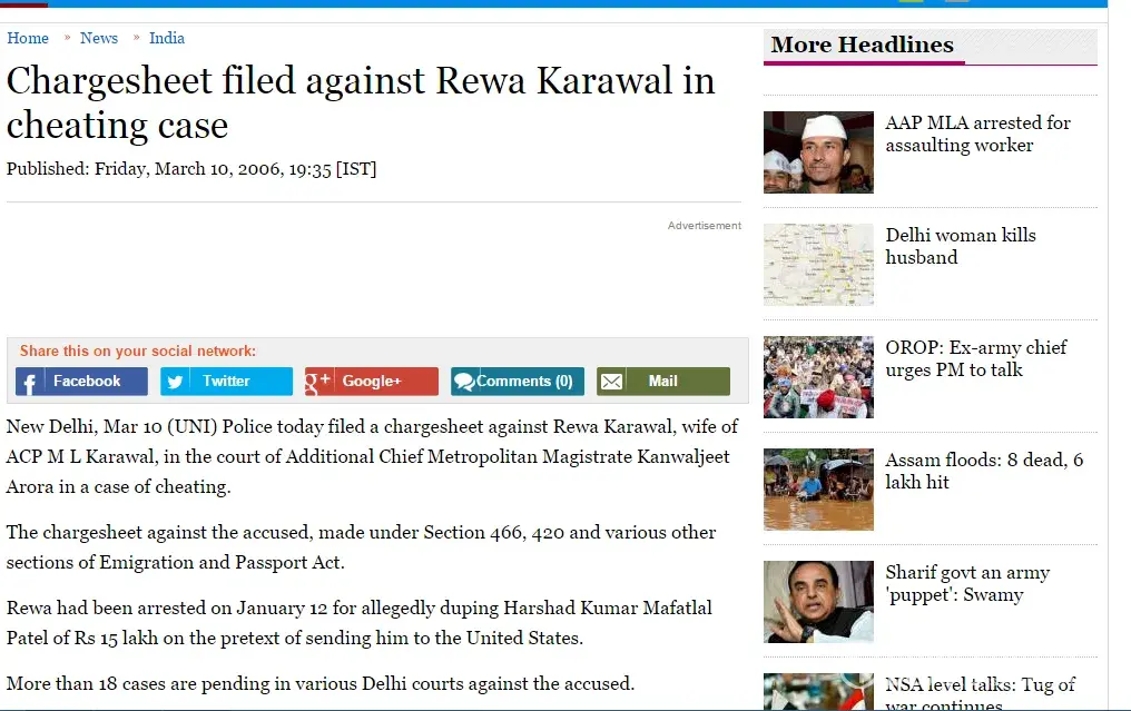 Friends please see bellow - http://www.oneindia.com/2006/03/10/chargesheet-filed-against-rewa-karawal-in-cheating-case-1141999498.html