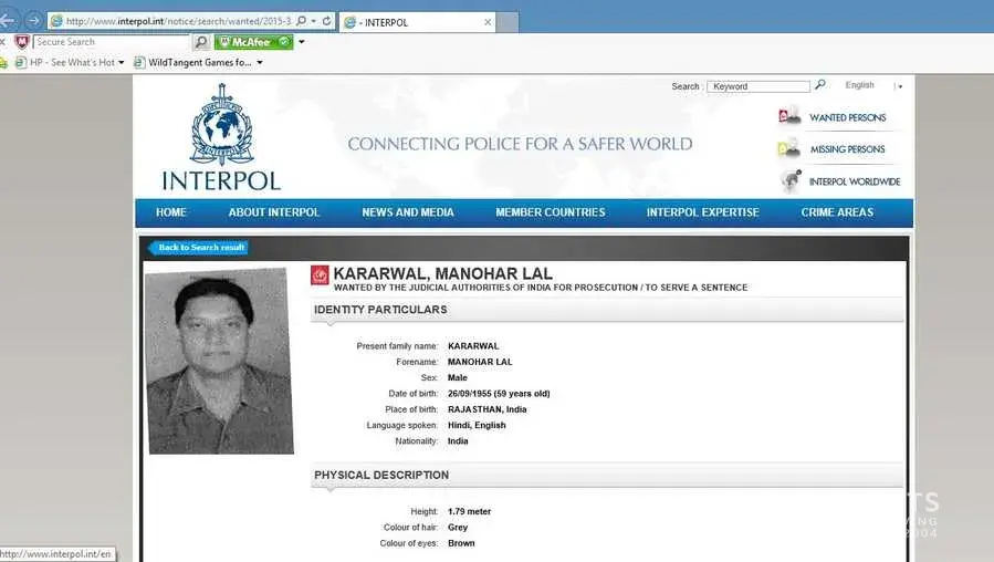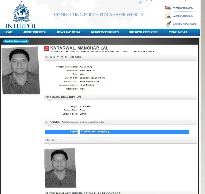 A Red Corner Notice (RCN) has been issued against her by the Interpol and her name now figures in its list of the most wanted persons. A request to issue a RCN was sent by the Delhi Police’s Economic Offences Wing to the Interpol few days ago.