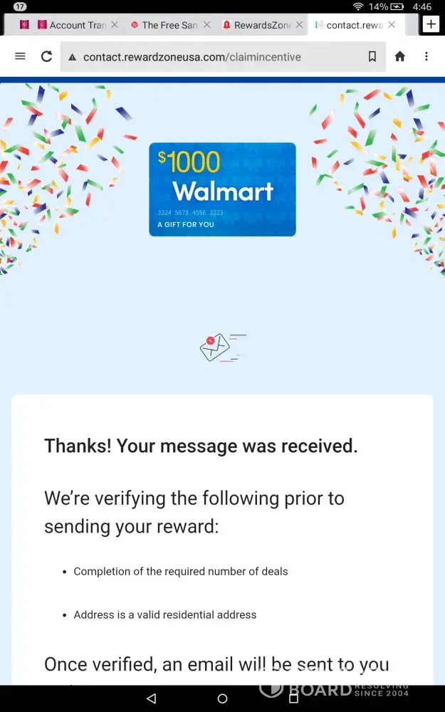 I fulfilled all necessary requirements to receive the 1000 Walmart gift card...on 11/20/2019, I still haven't heard anything back from them as of yet! We need to start making the company's we sign up for associated with RewardZoneUSA, liable as well, like Been Verified, ABC Mouse, ESPN+, Disney+, Ancestry, etc, they should be held just as responsible...