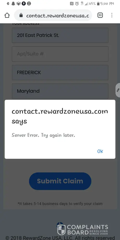 I completed everything that was suppose to be completed in order to get the $100 Visa Gift Card. But every time I'd try to claim my reward, it just pops up saying, "http://contact.rewardzoneusa.com/claimincentive says Error.