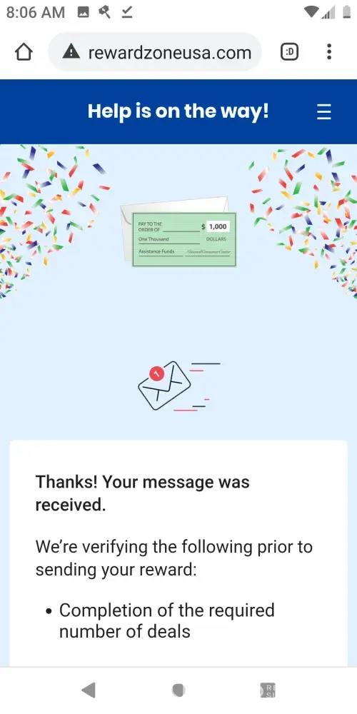 I completed 1 gold, 1 silver, and over 8 platinum deals to qualify for reward. I've emailed 5 times starting over 10 days ago and added info@rzuhelpcenter.com and contact@rzuhelpcenter.com as detailed in their instructions for response and claim reward. I have gotten no response! I have proof of my completed deals in email and proof I sent emails all within the 20 days to complete for reward. I believe this is a scam!