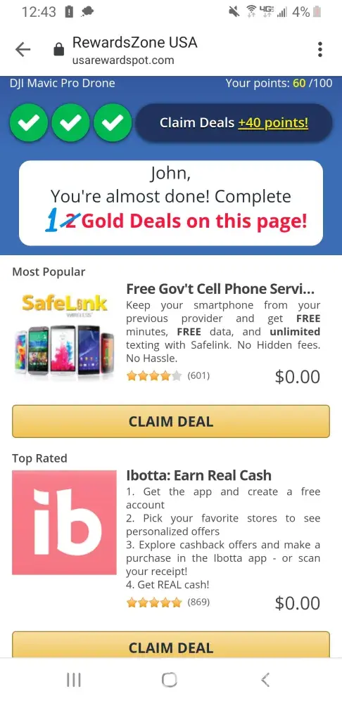 Yes I been playing reward zone usa also and I got so excited then over and overthey keep saying complete 1more deal I'm thinking in my head I am a winner this is wrong to keep setting me up for false hopei can't believe that let people do this to you and get away with itsending me emails tell in me I've won a 1000 amazon gift cardthey are boyish for that.