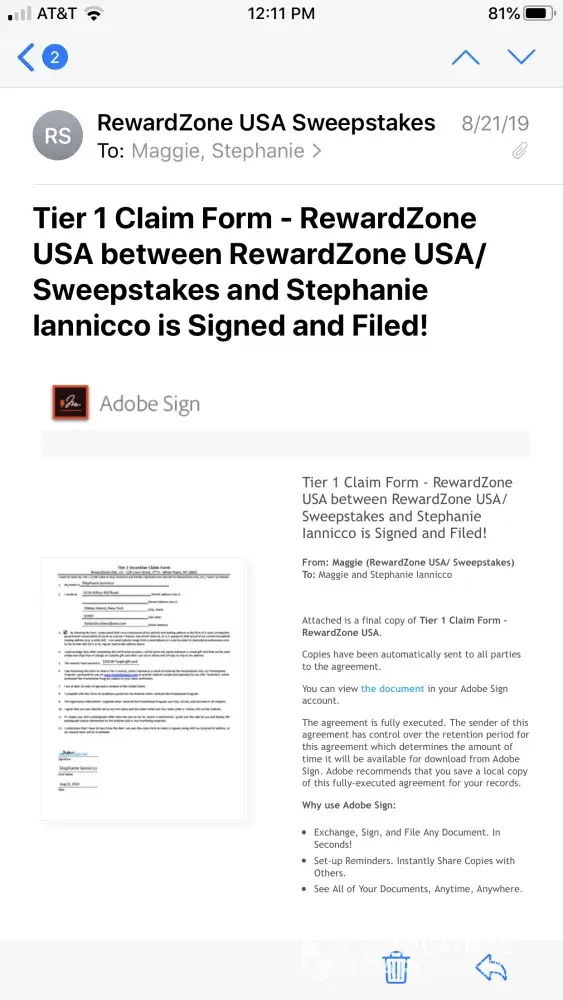 I received an email in the joint spam email account my wife and I have. We have had this email acount since 2004 and when we sign up for sweepstakes and such we use this account. This helps to decrease spam in our other accounts. We check it periodically. I received an email about a $1000 gift card and thought, " Why the heck not." I could use some extra cash since we just moved states and bought a house. I followed the link and spent the majority of my night and the next day doing surveys, filling out new orders, downloading apps, and playing games. Finally I reached my goals and could apply for the gift card. I then get an email stating I originally signed up from an old home address and my claim was invalid because I would need to have the same address to have my reward sent to. I never filled out an address when I originally followed the link. That was bad info on Reward Zone's part. Every offer I filled out was my new address. Never once was my old address visible where I could have rectified this issue and now they want to say I don't qualify because of the change in the address. We'll see what happens.