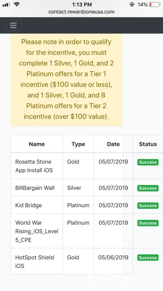This is the third attempt to reach the about my Walmart Visa! Card. I have completed all if the required offers. However, 3 off my Platinum offers are mistakenly listed as Gold offers?! I also contacted The Rescue Box folks, because it wasn't listed. The said they were not a part if The Reward Zone USA offers? So I didn't know how to select something else. This listed wrong are: Amore Coffee, Ipsy Glam Bag and the Dr. Seuss Book club. I sincerely hope this is not a scam as I have seen mentioned online, because It has been quite an expensive undertaking. I can't afford to continue. I have tried yo contact Reward Zone by phone and submit a notice to the company with no response.