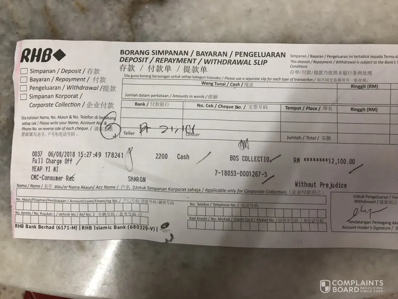 I'm Sri from KL. On 13/10/15 I found that there was an auto debit from my saving account amounted RMXXX. Later on 16/10/15 there was another auto debit from my saving account amounted RMXX. I called RHB to check why is there an auto debit and what payment it is for as I never give any instruction for any auto debit. Upon checking, the RHB operator said the auto debit is for my RHB personal l**n. I was in shocked because I never had any overdue for my personal l**n. My l**n settlement was up to date and I haven't pass the cut off date for my l**n payment. Upon checking the RHB operation said that it is true that my l**n payment have no overdue. I was in shocked when the operator said the auto debit amounted RMXXX was a 3 months advanced collection for my personal l**n. Which means I don't have to pay my personal l**n for the next 3 months. Why is there such an advanced collection and why is this happening to me? Please advise. Thanks.