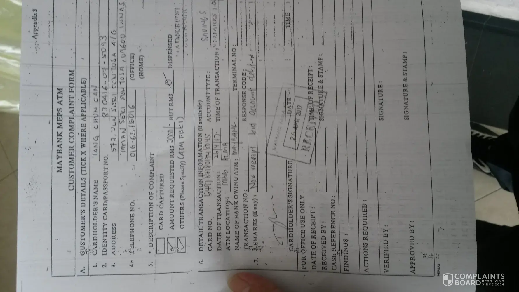 Consiquencs is I withdraw cash at maybank atm by rhb atm card but the cash not dispense.amount rm2000.