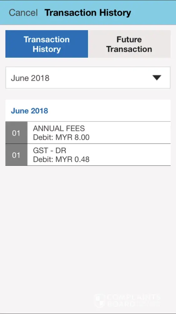 I would like to make a complaint about RHB Bank Berhad charged for GST on June.