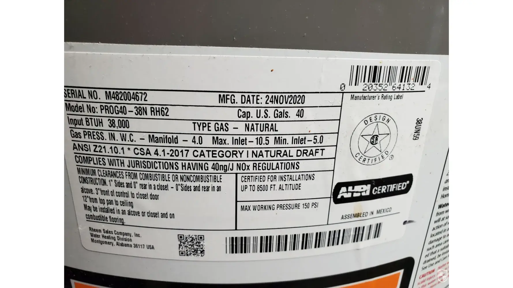 Ijust bought and installed a rheem 40 gallon hot water heater