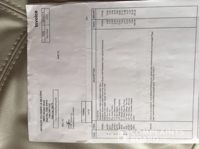 I filed a complaint with BBB and Rheem headqtrs. in Atlanta and recieved only a pat answer regarding to the fact that my warranty expired which I already knew. My issue is with the manufacturer in Montgomery. Alabama. We took care of our H.W. T. and even had a water softener that was maintained. Our town even has a state of the art treatment plant. I understand from the installer and what I've read that tanks should last 10-15 yrs. but ours just made it a little past the 6 yr. warranty? We are just looking for some assistance since we took care of our tank. I've worked in manufacturing and know mistakes can be made. attached are some pics of the tank and the invoice. thanks, Mick Dilley