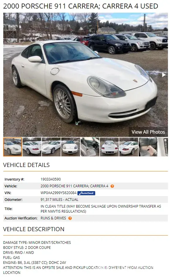 2. Vehicle was listed in a 3rd party non-running vehicles exclusive auction, also not disclosed.