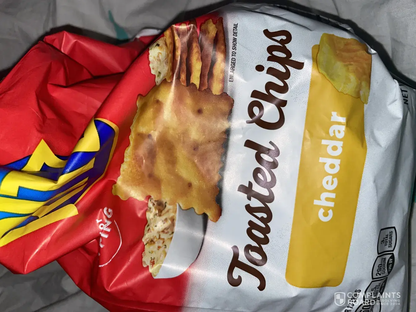 I opened a brand new bag of the cheddar cracker chips and as I was eating them I realized there was this really chewy piece and as I take the piece out it's this plastic.