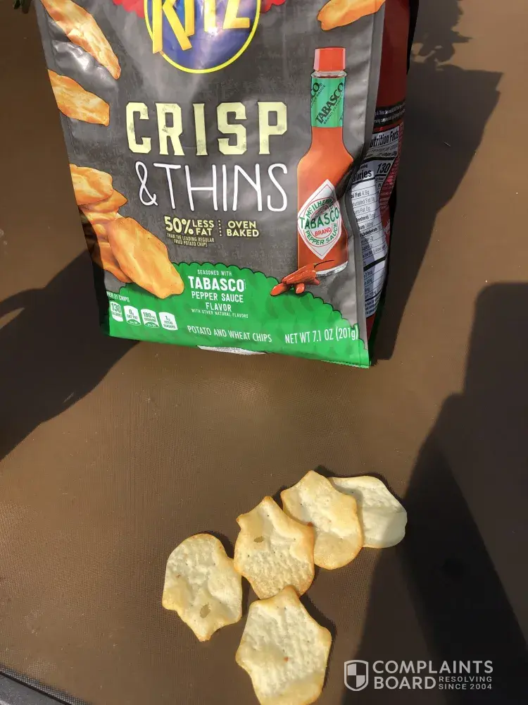 I bought these crackers and my son was so unhappy with them. He opened the bag and there was no seasoning of Tabasco at all in the crackers. He made me go out and get a different kind because he was so upset with the crackers. It was so bland for him that there was absolutely zero flavor on the crackers. You guys forgot to put the flavor powder on it. Real sad because he loves these chips and the flavor you guys should have never bought Kraft foods. Failure big time of course the ceo won't be held accountable