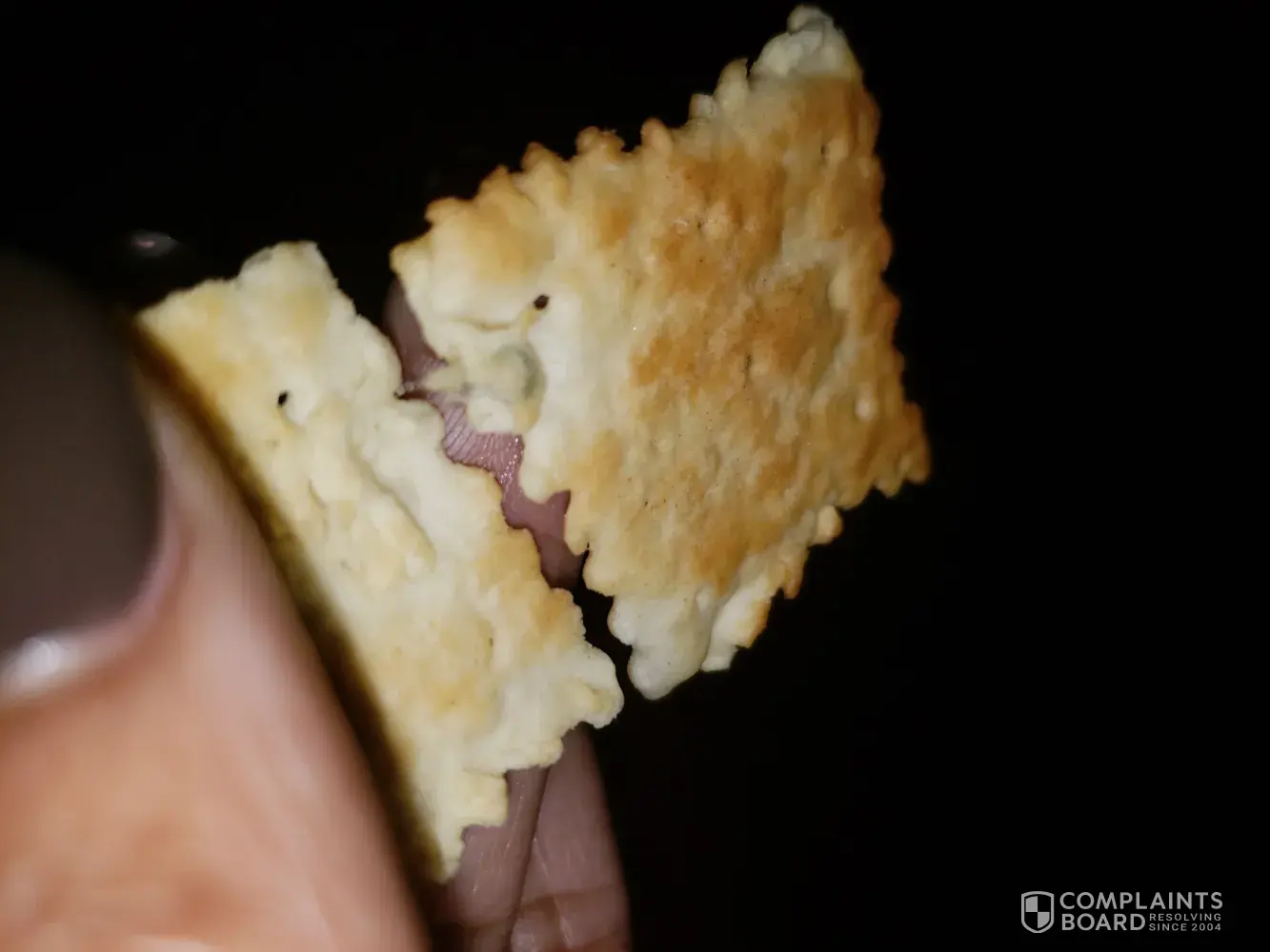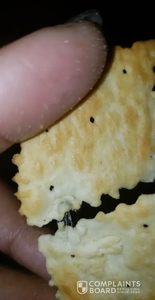 When I open up a bag of crackers there were some black "things" baked into 3 crackers. At first I thought it was marker on the outside, but when I opened it...I was disgusted to see something that looked like "bugs" baked into the crackers.