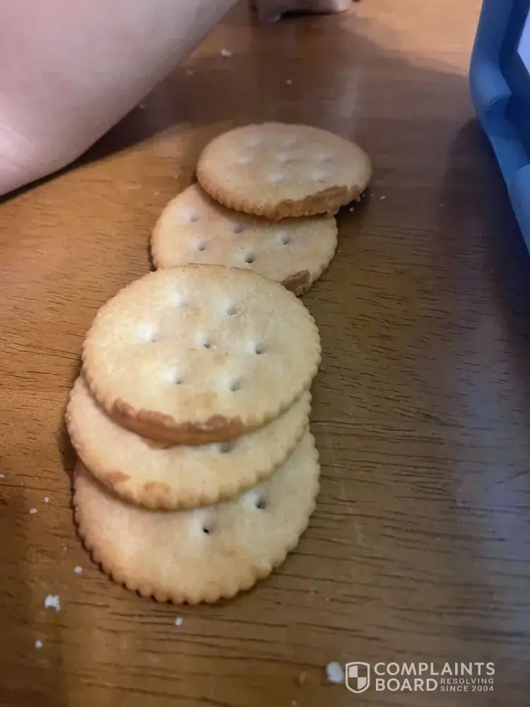 Ritz Crackers I am complaining about how the past 4 boxes of ritz crackers have been crumbly and broke just putting them in a dish