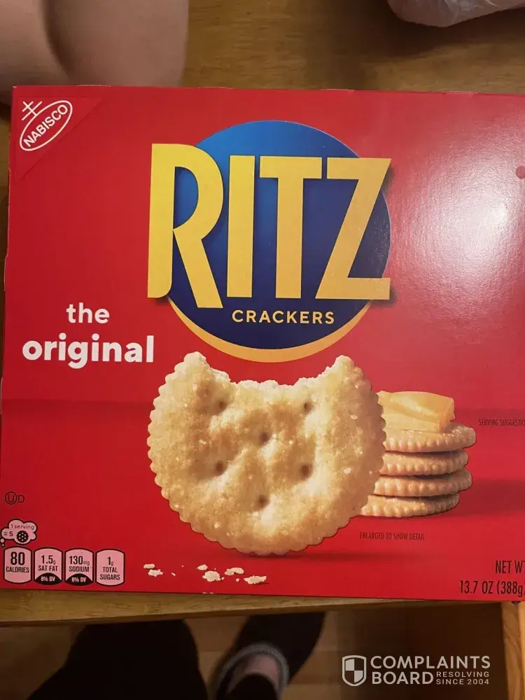 Way to drop your Ritz sales. There absolutely horrible! And I can now tell when I buy a store brand and there all crumbled, Then it's a Ritz cracker inside the box.