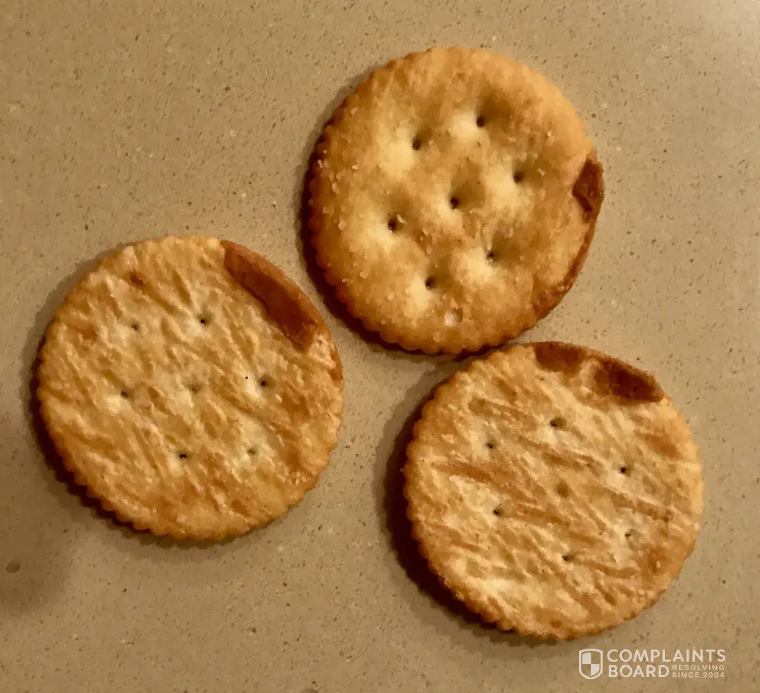 It is funny that I saw this while casually reading complaints because last week I purchased ritz crackers and every cracker is either crumbly or burnt horribly!