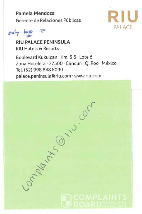 Instead he provided his email address, the same email address for his manager, and informed us that we would need to contact the corporate associates for the RIU which we should go online and look for their contact information.