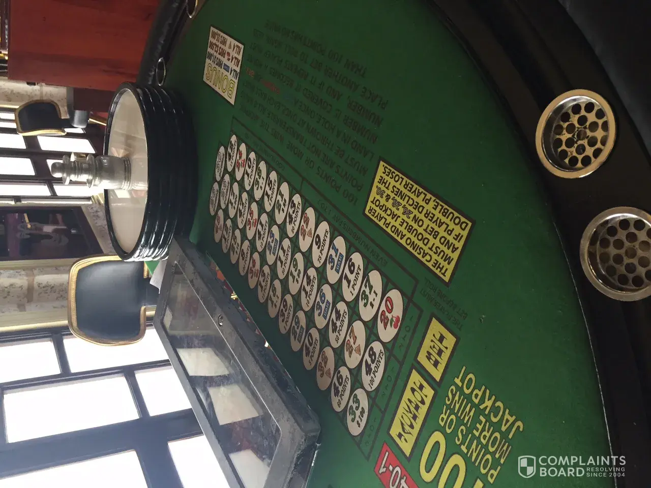 The goal of the game is to accumulate 100 points to win the jackpot. I quickly accumulated 99 points. Now that I was only 1 point away, the only number totals I got were the ones that doubled the amount of the next bet and jackpot. At this time the dealer slows down and shows you how the balls fell into holes that total the number that does not win any points but doubles the bet and jackpot. Since I’ve already gotten 99 points so quickly the thinking is that it would be easy to get just one more point. The dealer is cheering for you saying that someone just won a huge jackpot last week and he hopes that you will tip him when you win. He says that the only way the house wins is if you can’t make the next bet. Since the bet and the jackpot have been doubled many times at this point it was a 10, 000 bet to win 400, 000. The scam is that I was never getting any of the red balls into numbered holes that would total a number that gave points to me.
