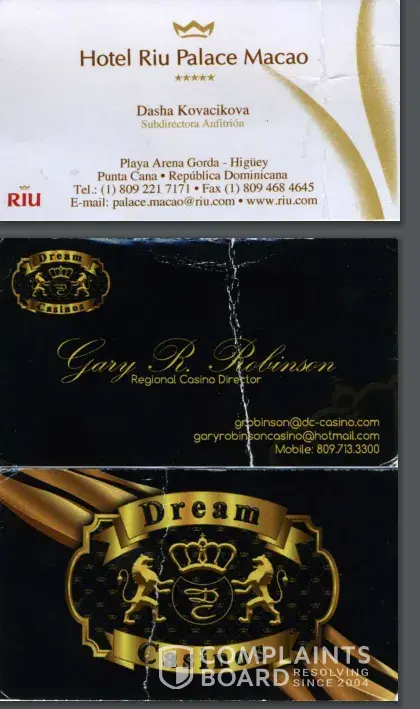 Once went online and discovered how many people had experienced the same scam I tried to contact the hotel manger of both the RIU Palace Punta Cana and RIU Palace Macao. I left several messages and neither returned my calls or answered the phone when I called. The casino manger never returned my call either.