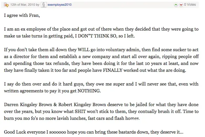 Hello I'm a resident of Port Douglas & acquainted with Robert Kingsley Brown. I have recently been directed to the complaints board site