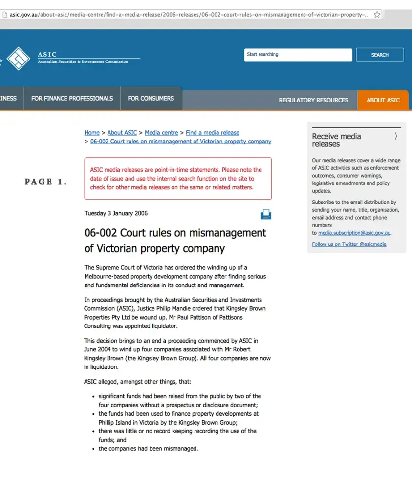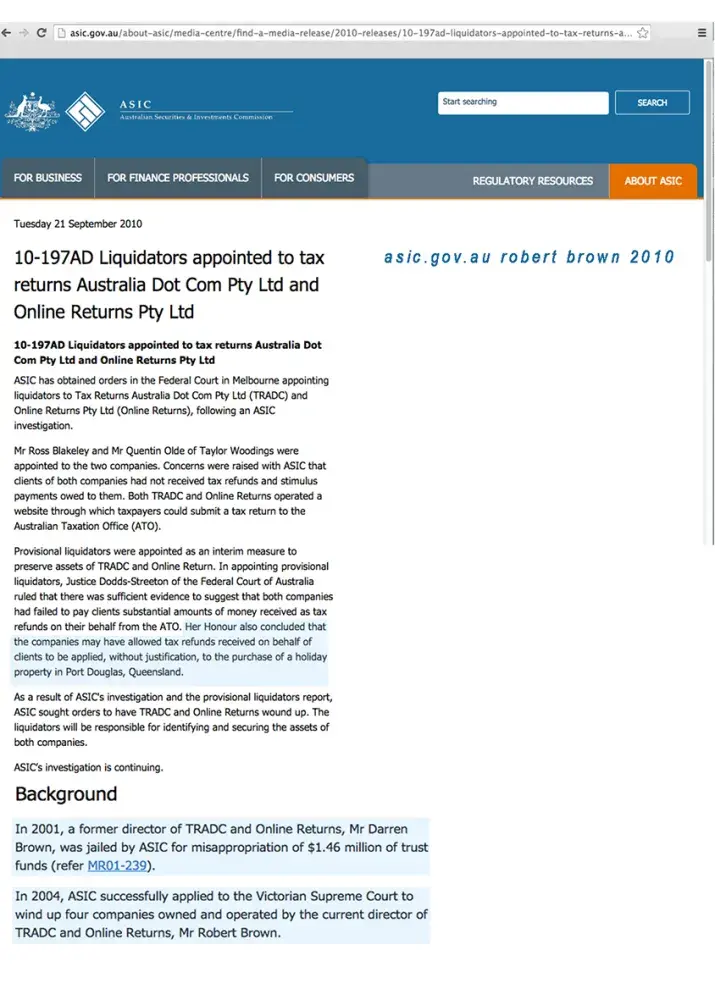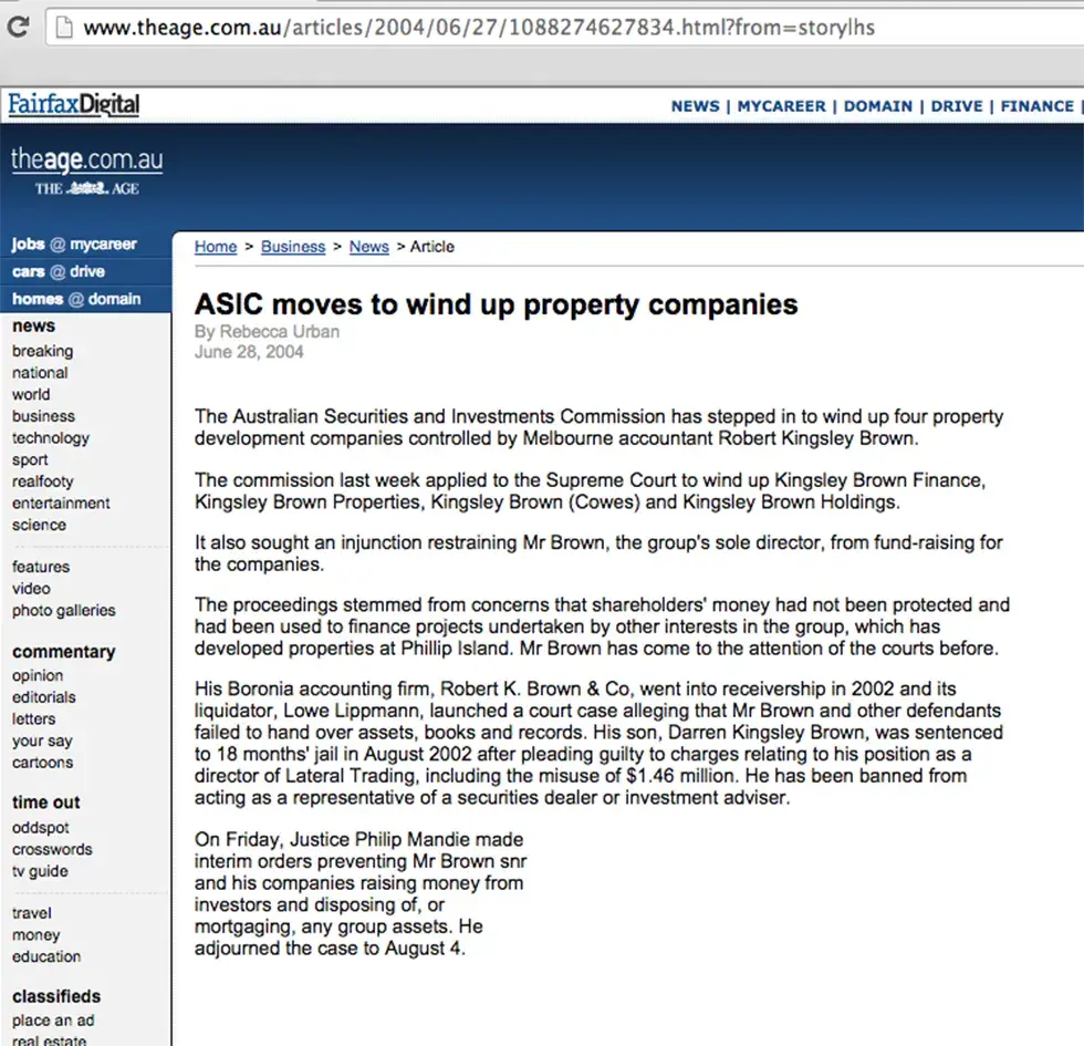 Robert Kingsley Brown 'FRAUD" *ASIC *Money Management *The Age