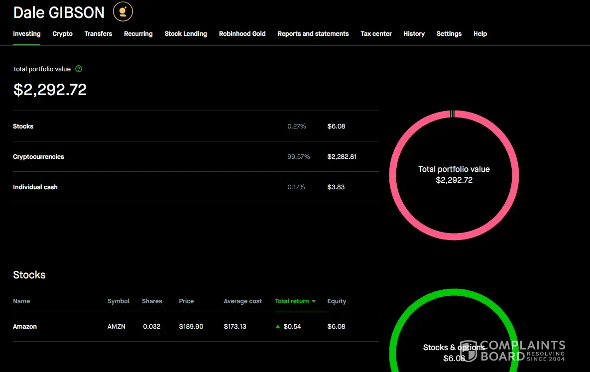 Read full complaint and 1 commentIs Robinhood Legit?