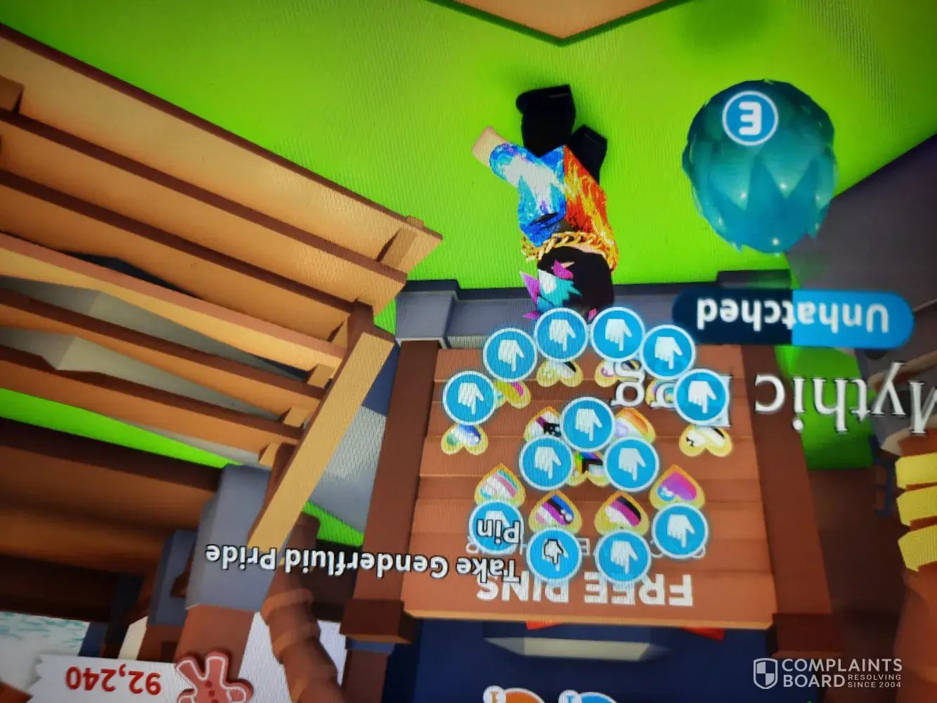 I am complaining about inappropriate content on AdoptMe. My child was just playing the game and asked me 'what is pan? What is gender fluid?'. When I went to look at what he was looking at I saw that the game had presented him with a pin board with pins and asking him if he wanted a 'free gender fluid/aromantic/ace/trans/pan' etc pin.