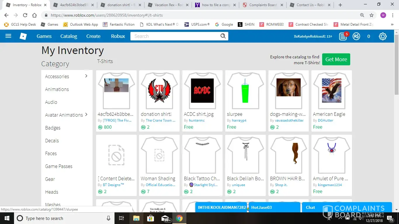 My current account on Roblox such known as "XxKatelynRobloxX" has been hacked. I have currently changed my password, but my former password was accessed by one other. That night before i logged off, I bought the "800 robux - $10.00" and bought two things from "Robloxian high school" game. Then I went online today late morning to find that all my robux was gone. I checked my inventory and found two T-shirt items in my inventory, one T-shirt was called "donation shirt!" made by https://www.roblox.com/Groups/Group.aspx?gid=1093137" that was 2 robux. And the other T-shirt was called "4acfb624b3bbe93ccb273a5ebdc852cd" made by "https://www.roblox.com/Groups/Group.aspx?gid=2573807" And was 800 robux. And to add, i logged off at almost 10 o'clock yesterday night. and did not get back on in the night. so please, if you could refund me that would be amazing! but if you can't the least you could do is to find the person who hacked my current account. Thank you, and good day.