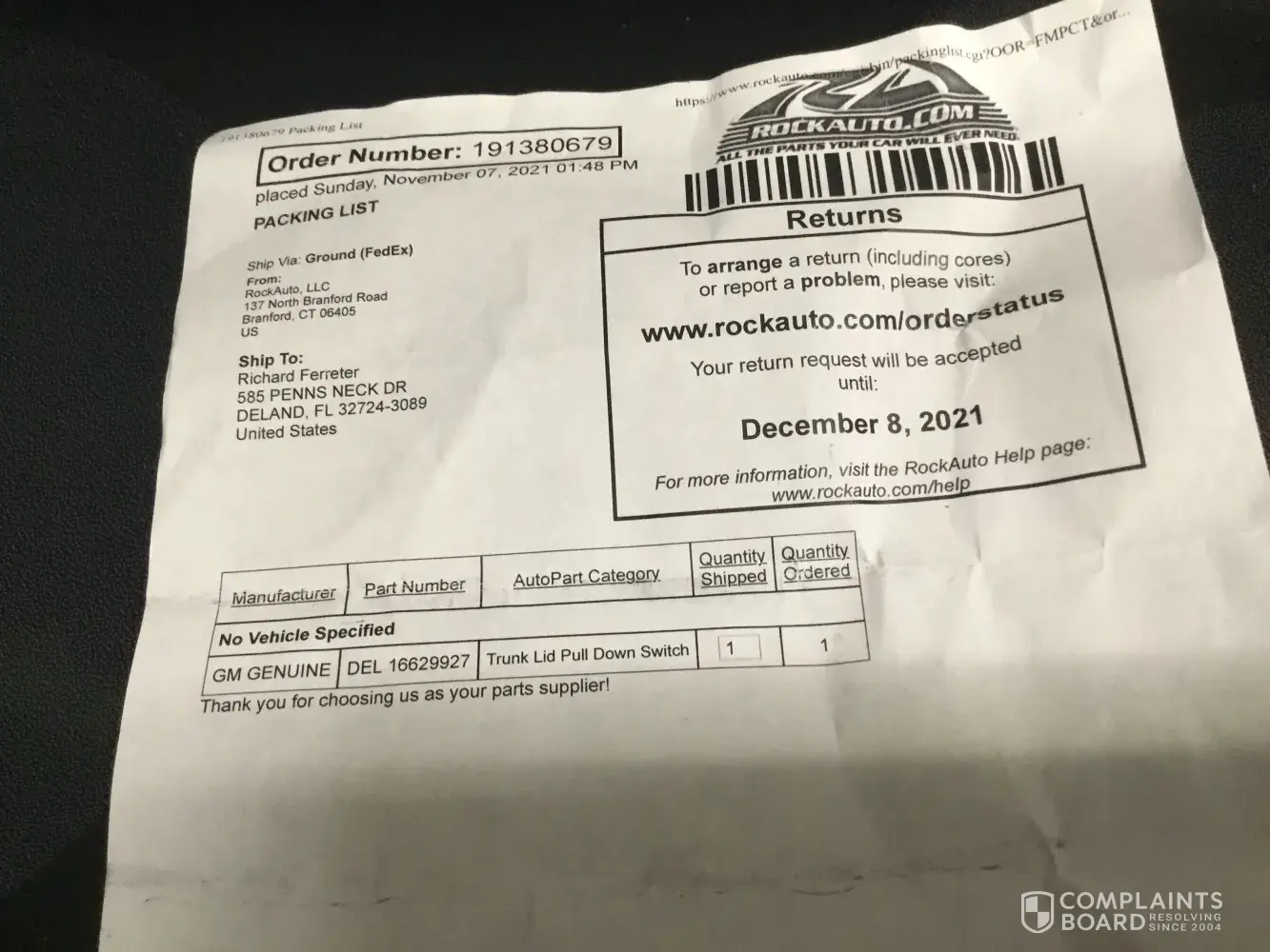 RockAuto Complaints Page 5 of 12
